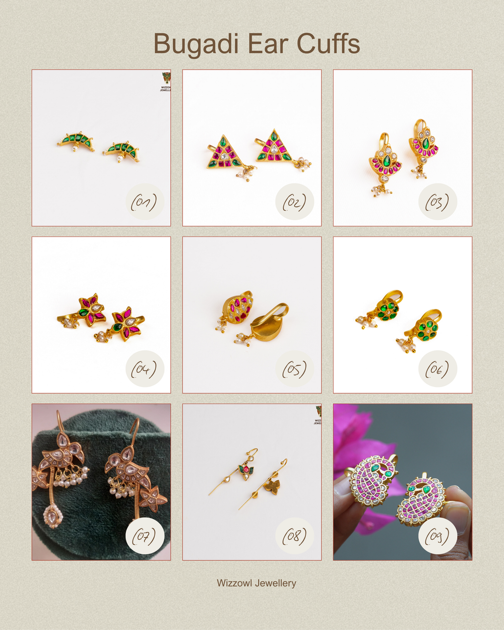 The Bugadi is a classic design from Indian heritage, originally worn as a full ear ornament. At Wizzowl, we’ve reimagined this cultural staple with modern materials and craftsmanship, offering bugadi earrings and bugadi earcuffs that don't require piercing but still honour their roots.