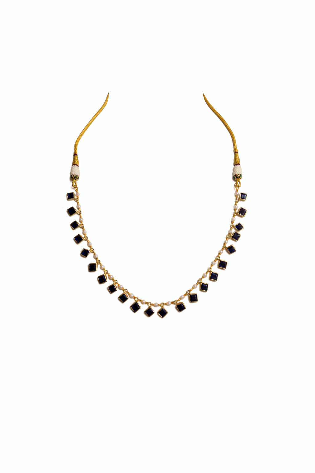 Blue Square Silver Chain