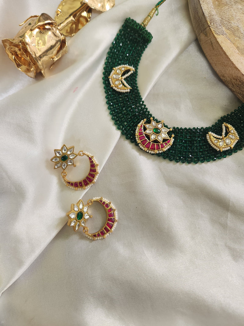 Complete Set: Includes a matching choker necklace and coordinating earrings for a perfectly styled look.