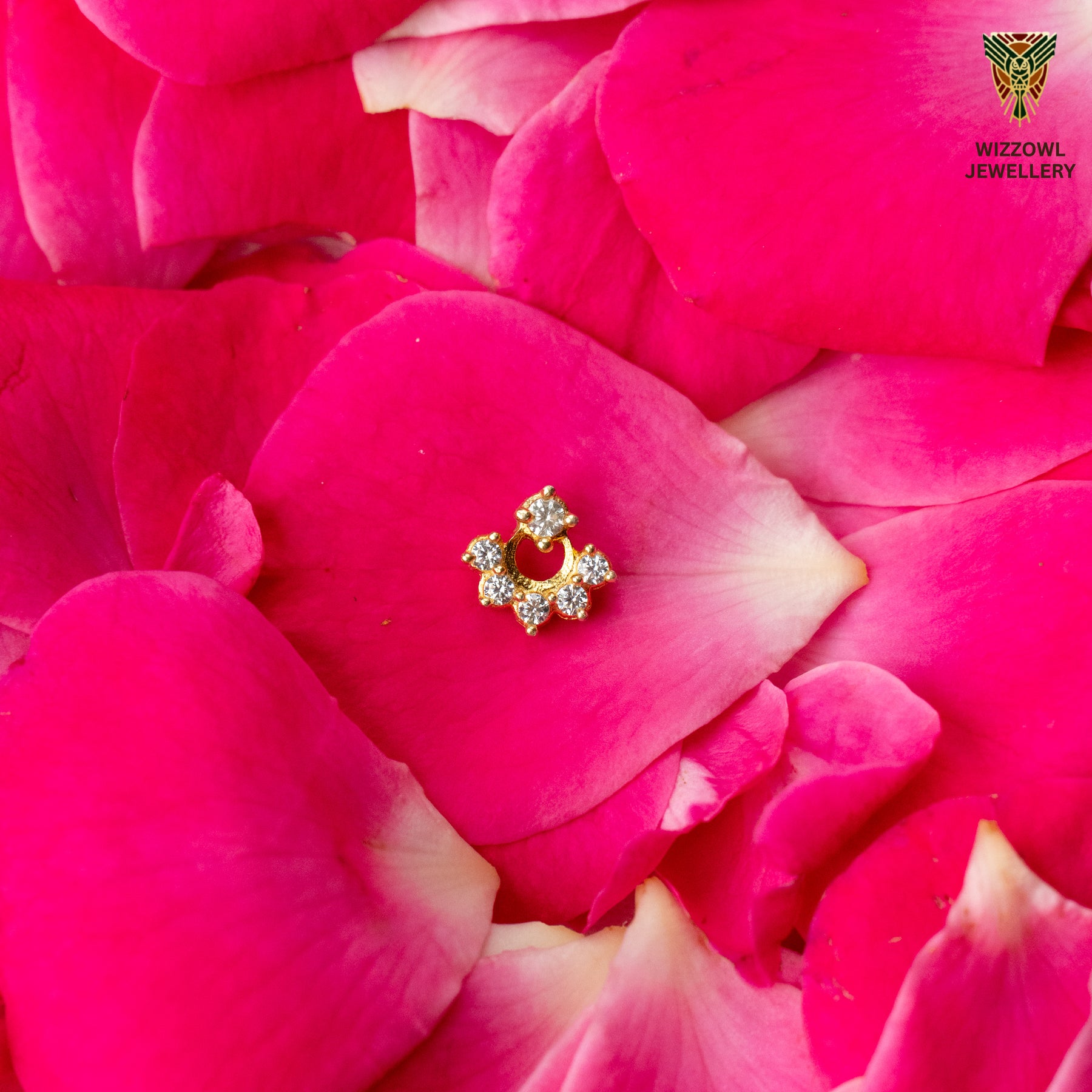 Enhance your natural beauty with our delicate gold nosepins – a perfect fusion of tradition and modern charm, handcrafted to add a subtle sparkle to every moment.